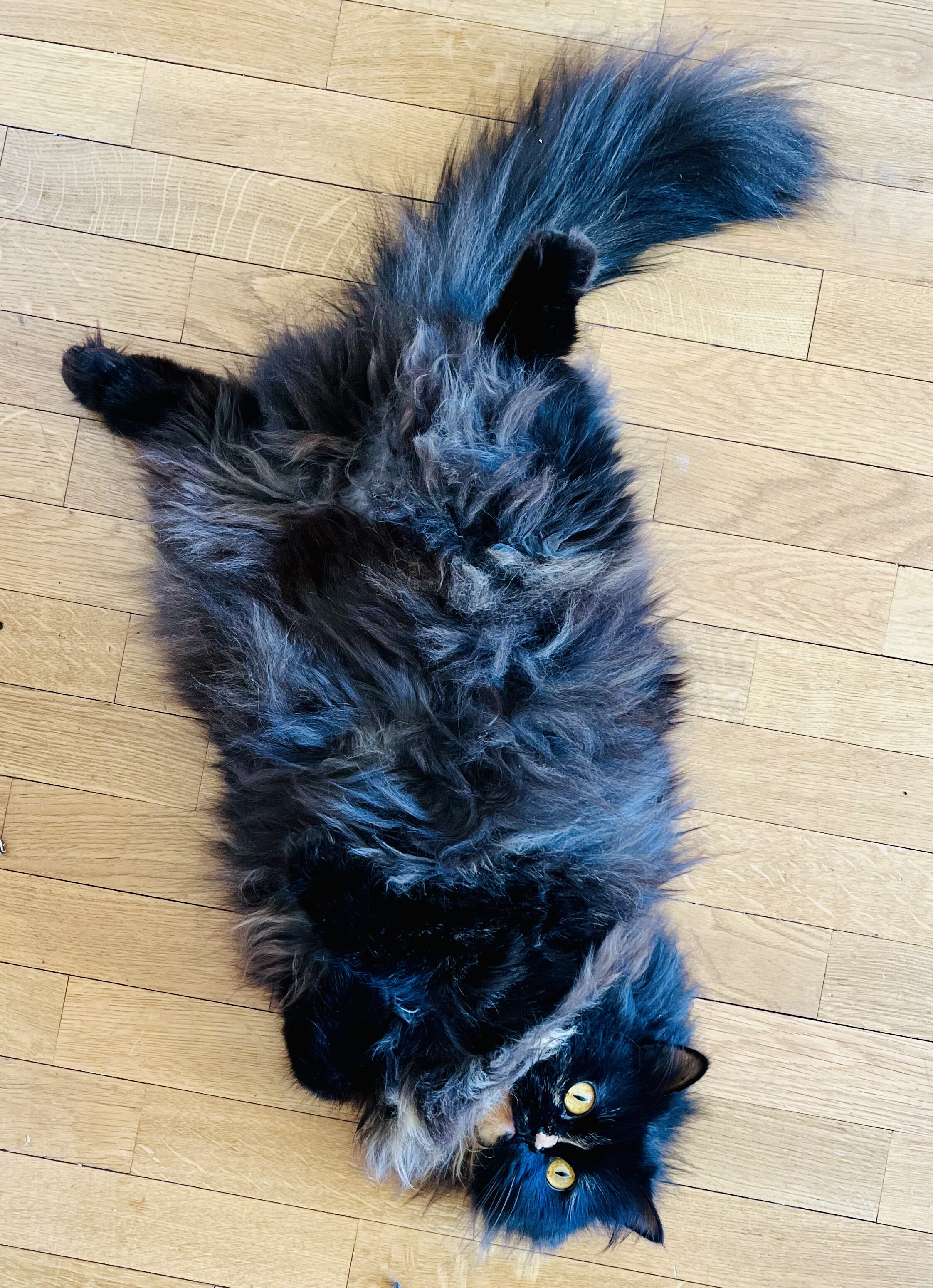 A de nombreuses casquettes : contrôleuse qualité, community manager, RH (réveil humain). Travailleuse infatigable. Un véritable œil de lynx mais ses grosses pattes boudinées tapent parfois sur les mauvaises touches du clavier. Coûte cher en croquettes.